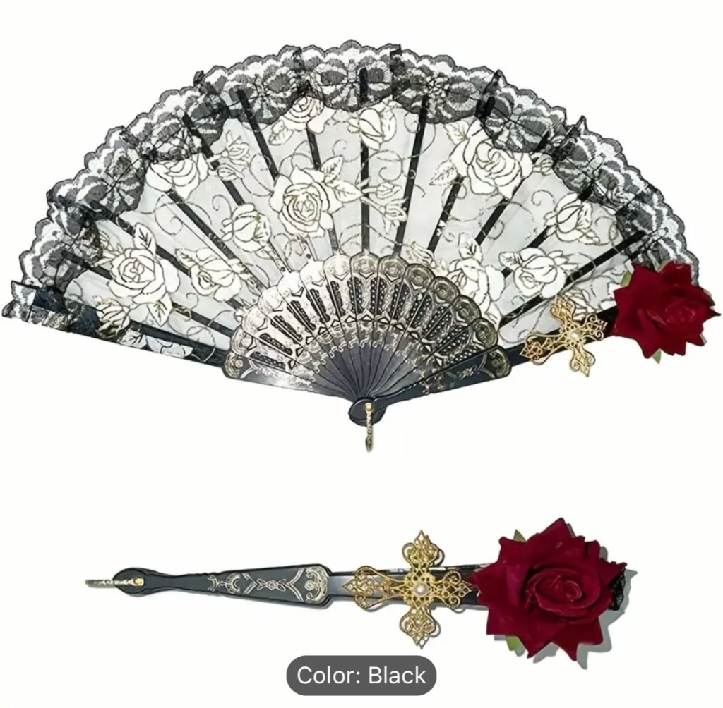This beautiful fan is great for all your burlesque dance classes and dressing up your outfits that really let the Pirate Rose within you shine!